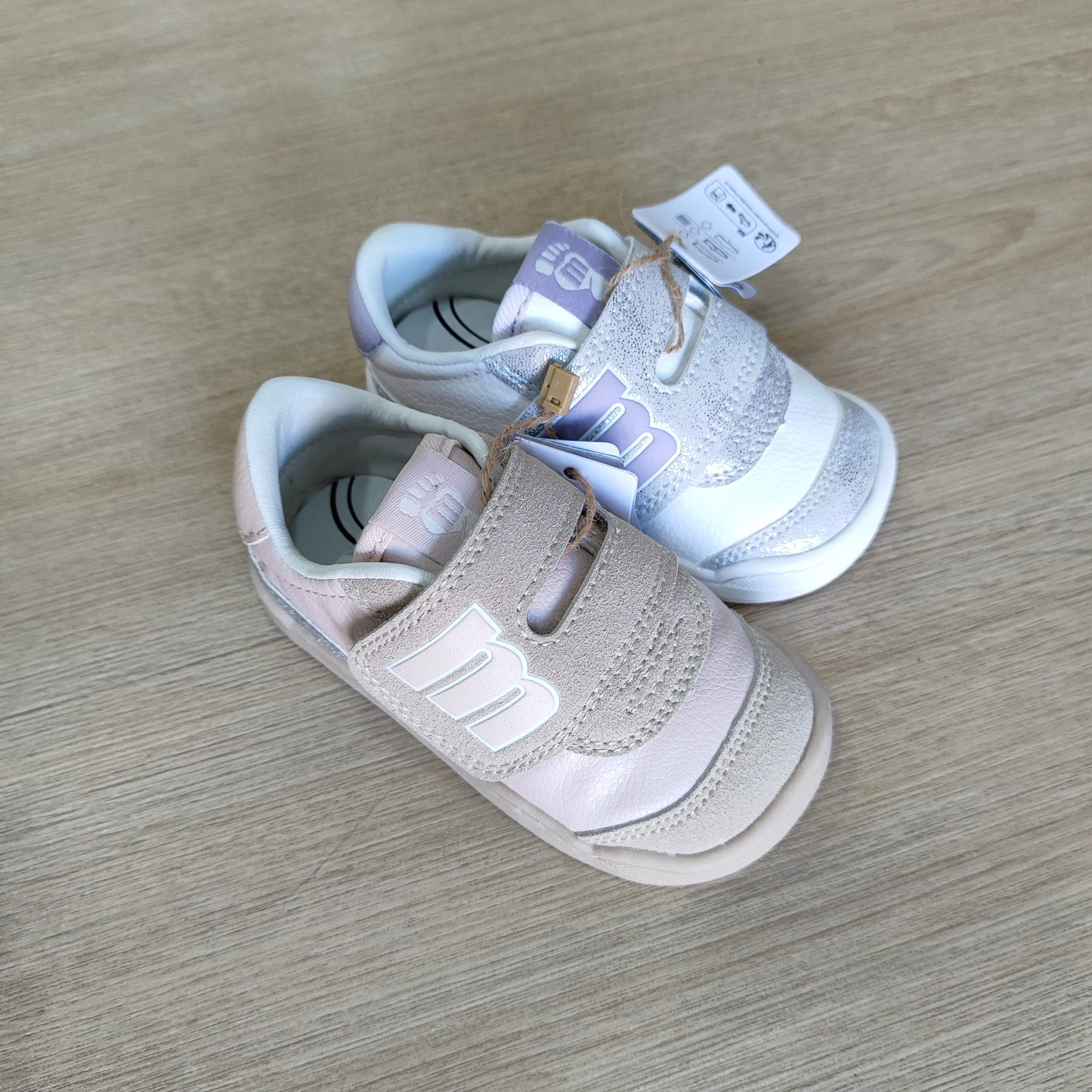 Zapatillas de color blanco para bebé de la marca Mustang modelo Free Baby. Con detalles en glitter fucsia, talón y lengüeta rosa, y puntera gris, este diseño combina estilo y funcionalidad. Incorpora cierre adhesivo y cordones elásticos para facilitar el calce. Diseñada y desarrollada especialmente en colaboración con el Dr. Juanjo López, traumatólogo deportivo e infantil, para respetar el desarrollo natural del pie de los niños. Gracias a su puntera ancha permite el libre movimiento de los dedos dentro del zapato. Su suela tiene 3 mm de grosor y con zero drop (totalmente plana) respeta el natural desarrollo del pie del pequeño y sus elementos flexibles y torsionables hace que el pie del niño no esté encorsetado por la estructura del zapato. Las plantillas extraíbles facilitan comprobar si la talla del calzado es la correcta para tu hijo. Además, su fácil apertura facilita que el niño pueda descalzarse y calzarse de forma autónoma. Acompaña los primeros pasos de tu bebé con Mustang. Con certificado VEGANO sellado por INESCOP, el cual garantiza que la naturaleza química principal del material no se corresponde con fibras de origen animal.