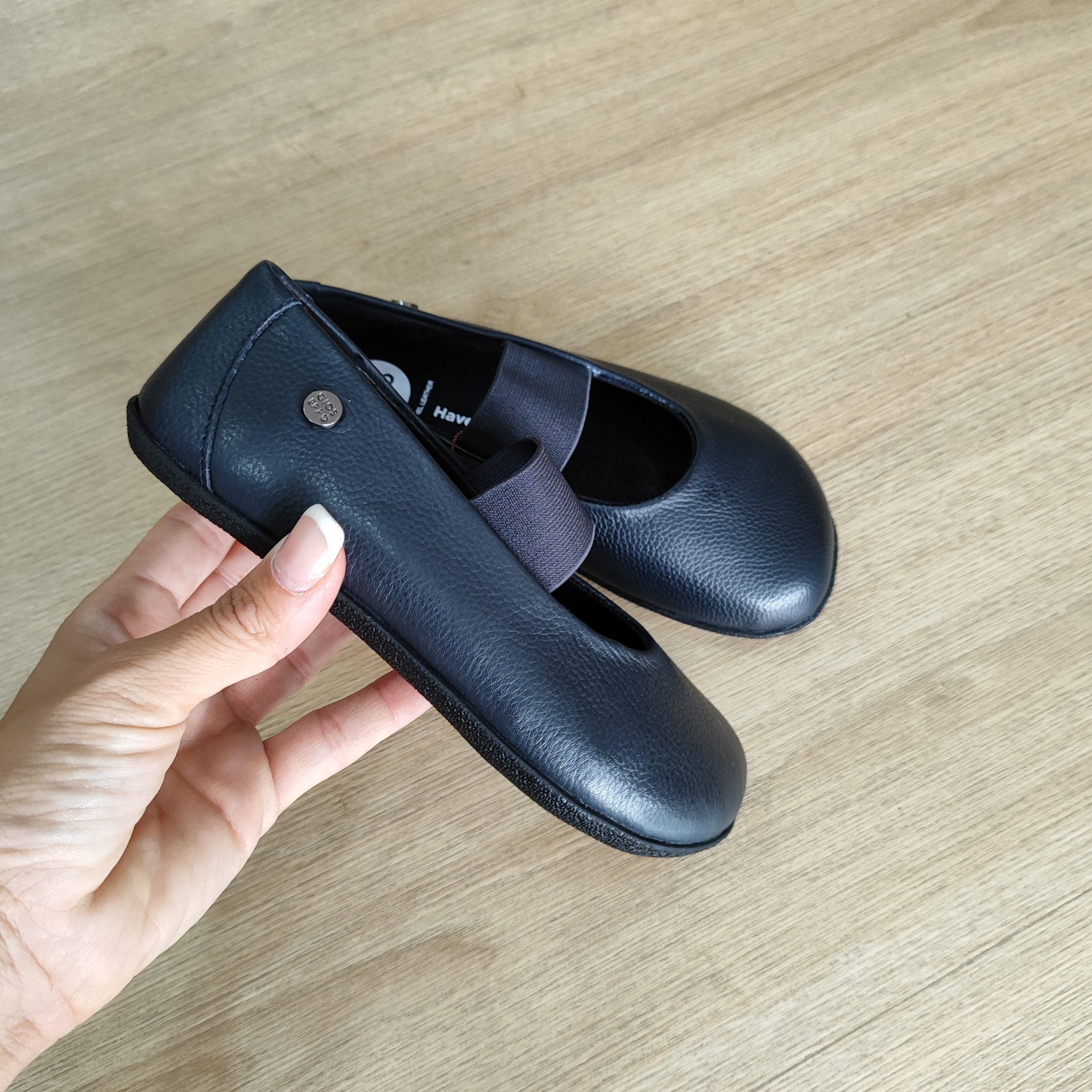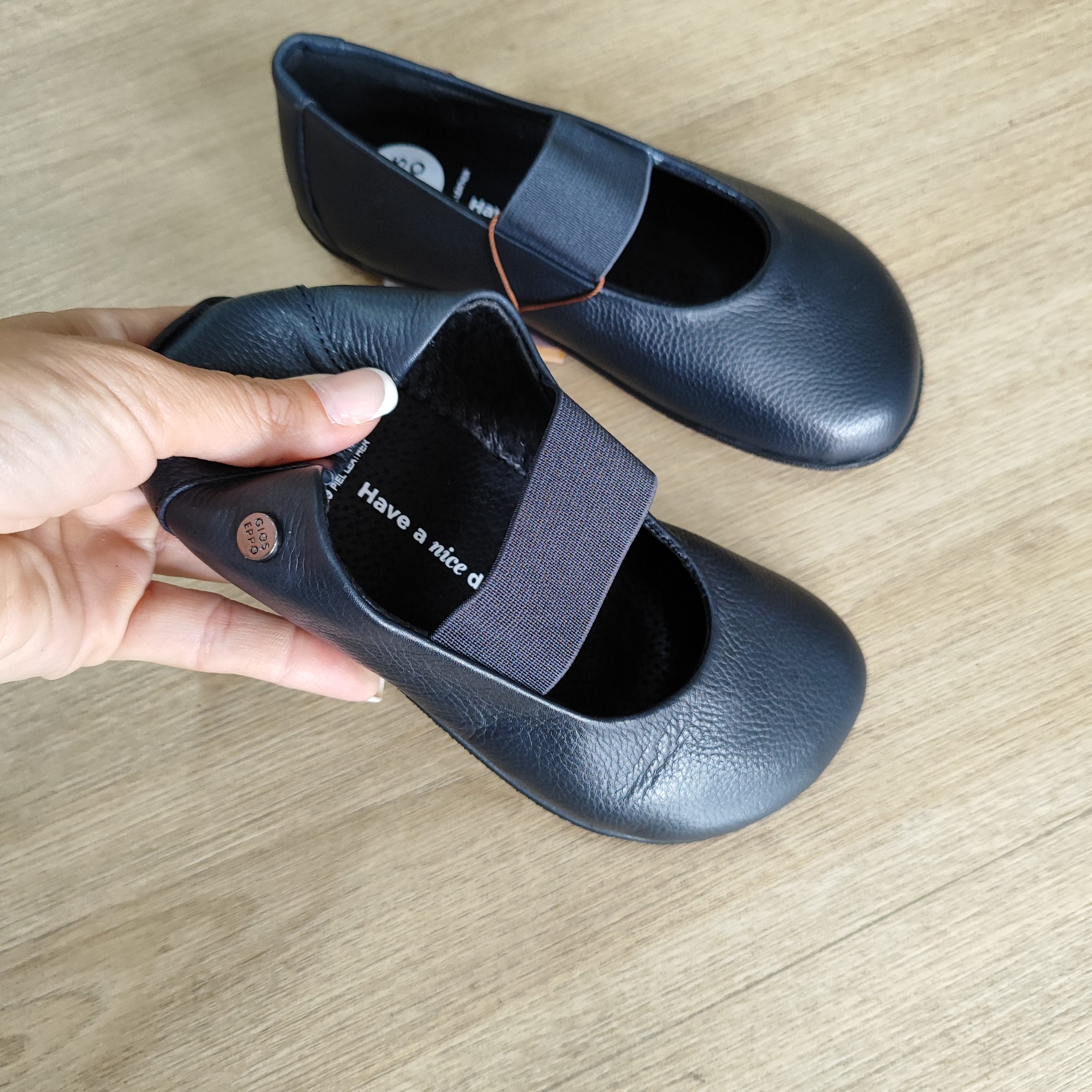 Bailarinas colegiales de piel con elástico en el empeine. Diseñadas siguiendo las tendencias minimalistas para garantizar la pisada natural.