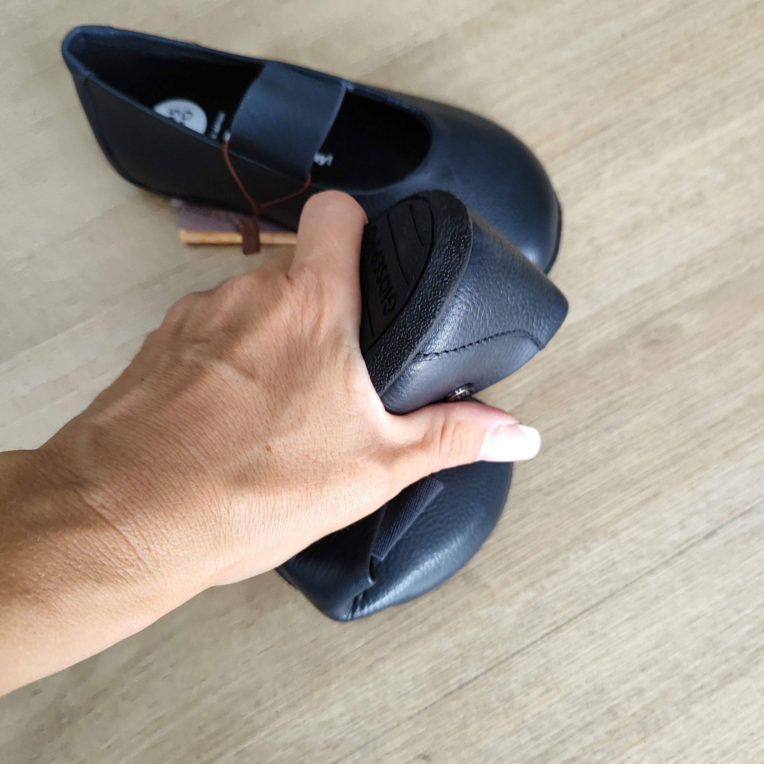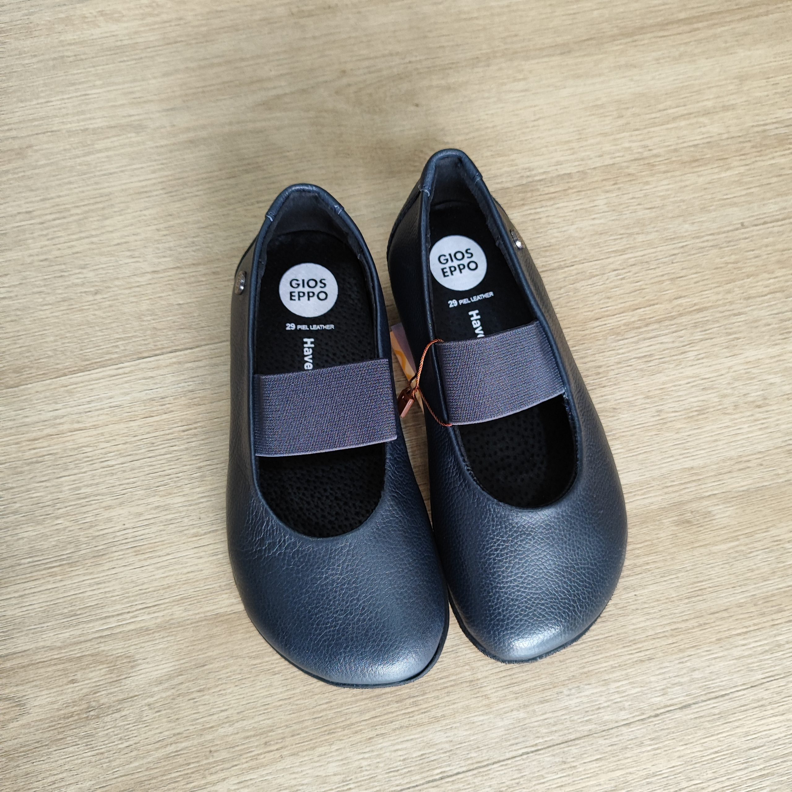 REF: 76757-P-NEGRO Bailarinas colegiales de piel con elástico en el empeine. Diseñadas siguiendo las tendencias minimalistas para garantizar la pisada natural.   Características especiales: Flexible y torsionable. Plantilla extraíble. Sin refuerzos que ferulicen. Suela fina. Puntera amplia. Piel suave. Sin desnivel (drop cero).     Composición: Corte, forro y plantilla de piel. Suela de TPR…