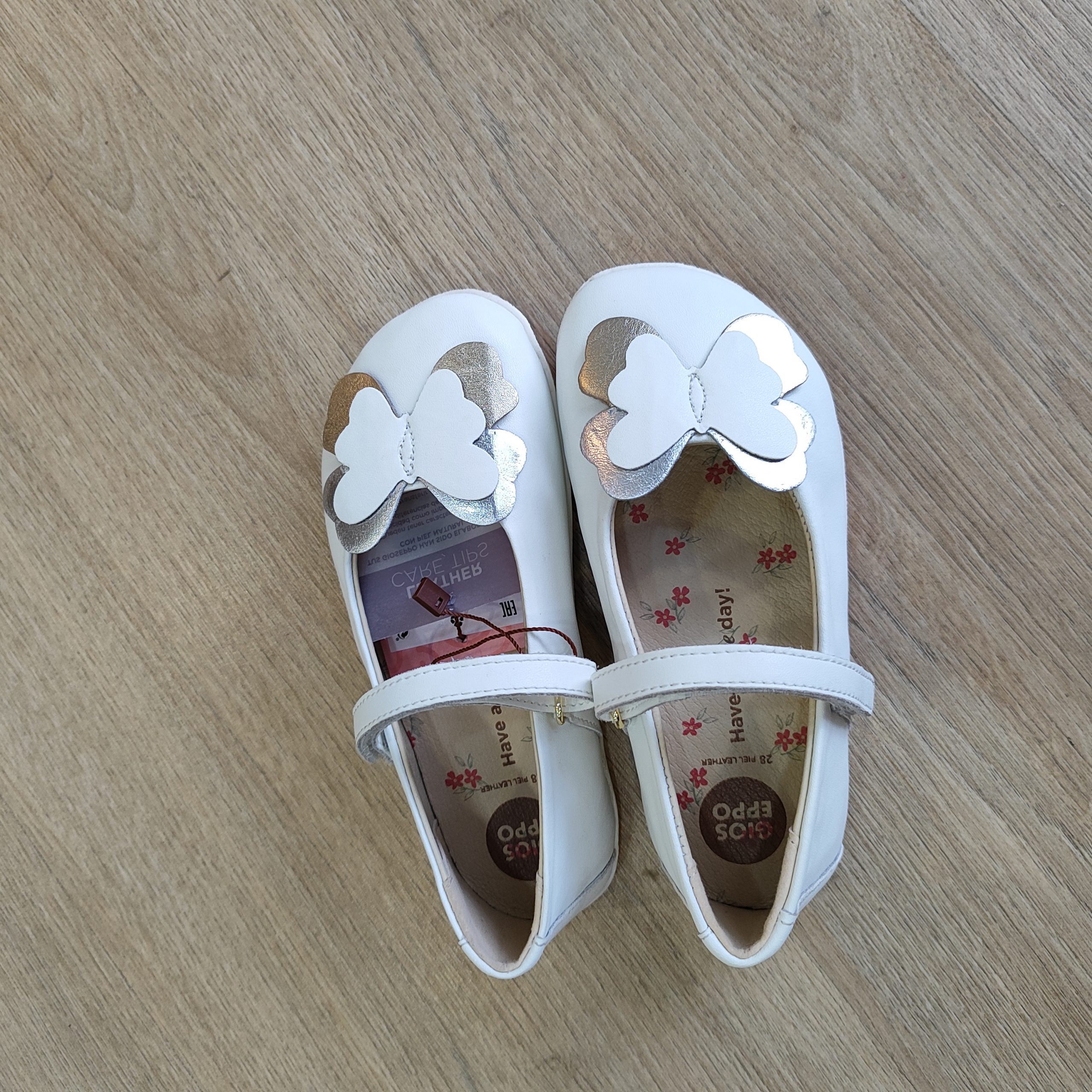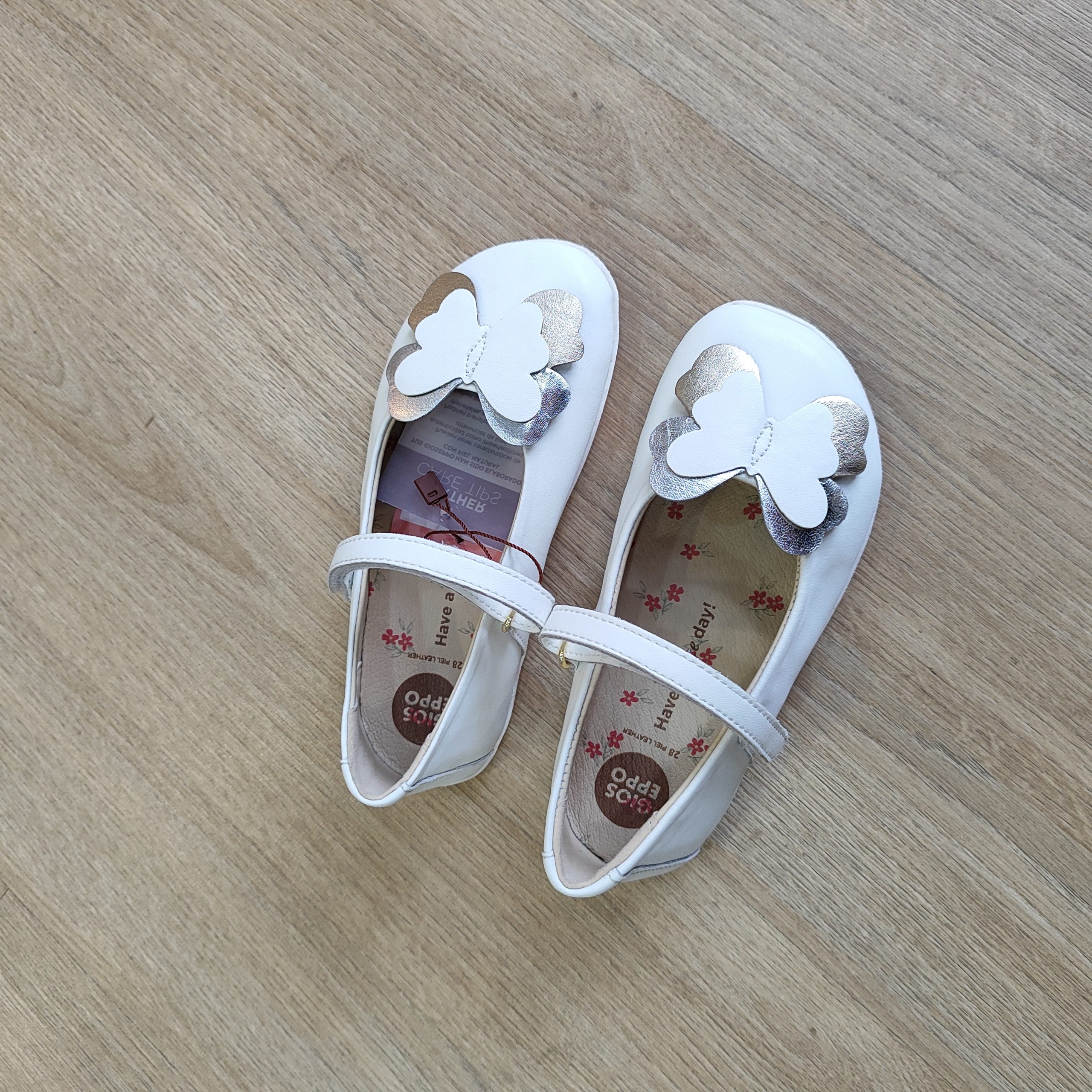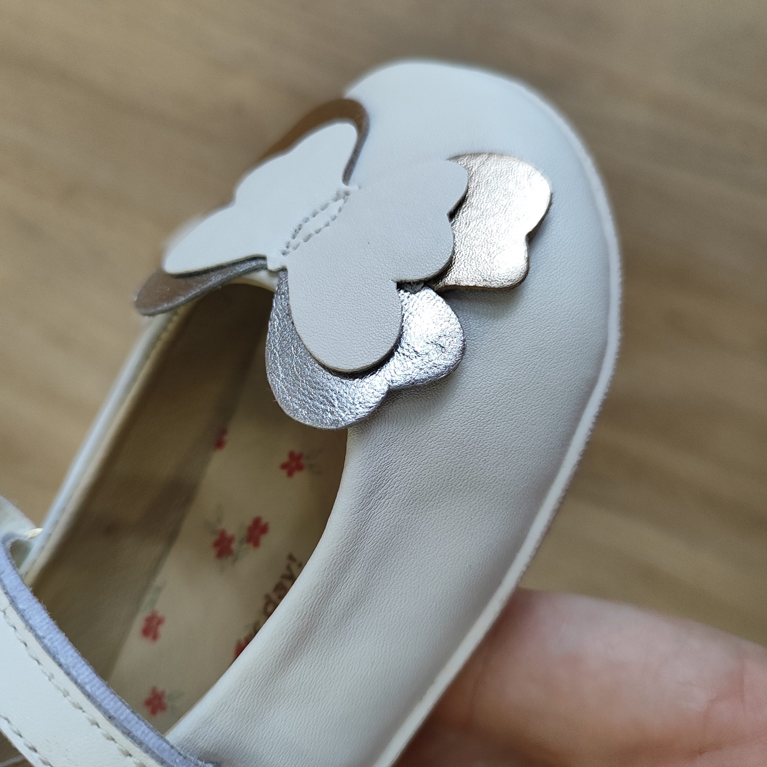 Bailarinas de piel con detalle de mariposa. Detalles metalizados. Diseñadas siguiendo las tendencias minimalistas para garantizar la pisada natural. Cuentan con cierres ajustables en el empeine.