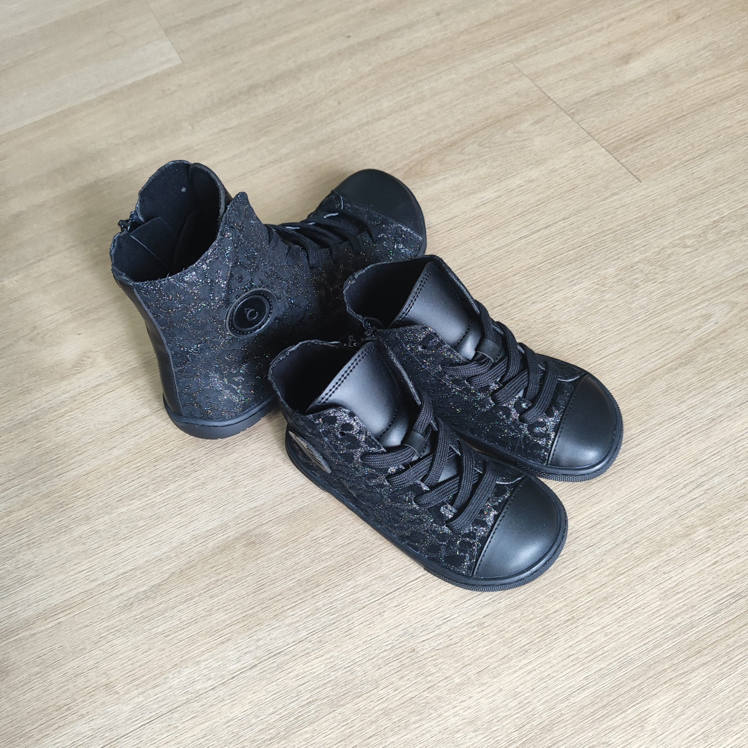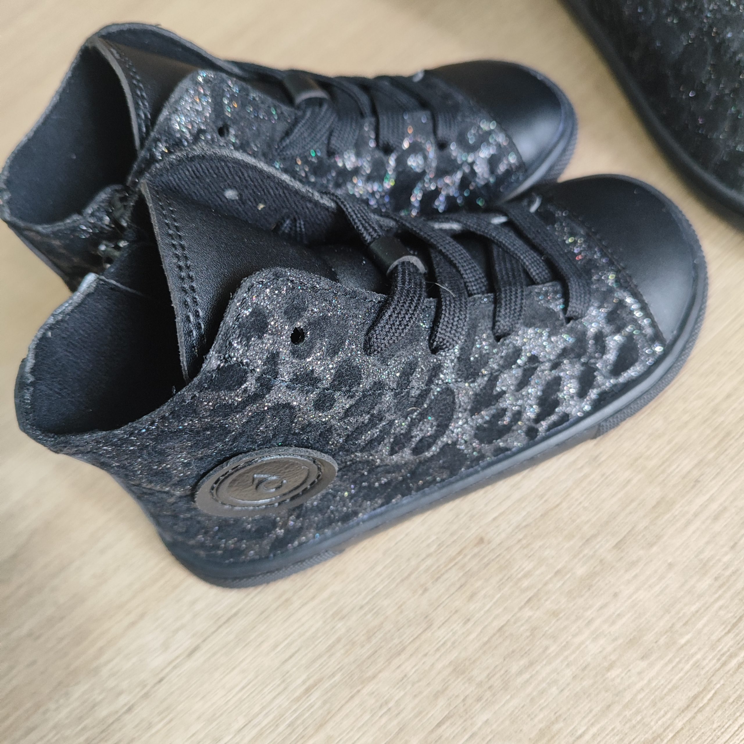 Su diseño con cordones ajustables proporciona una sujeción segura y adaptable, mientras que su acabado “brilli-brilli” efecto galaxia convierte este modelo en una opción versátil tanto para el día a día como para looks más atrevidos.