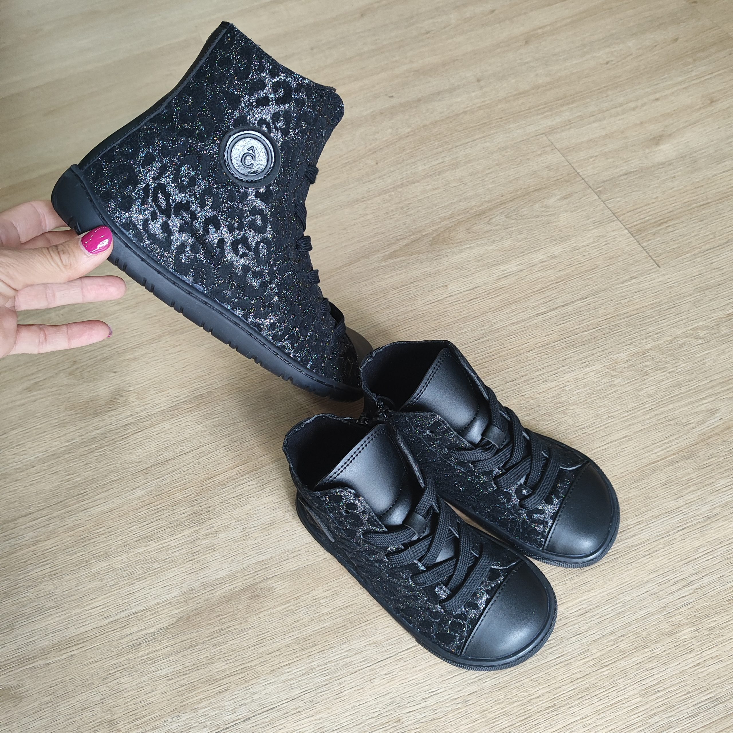 Descubre el botín Coqueflex modelo 15500 Electra Multi Brillante Galaxia, una combinación perfecta de estilo, comodidad y respeto por el movimiento natural del pie adulto. Este diseño exclusivo en color leopardo negro con efecto brillante galaxia aporta un toque moderno y elegante, ideal para quienes buscan un calzado con personalidad.