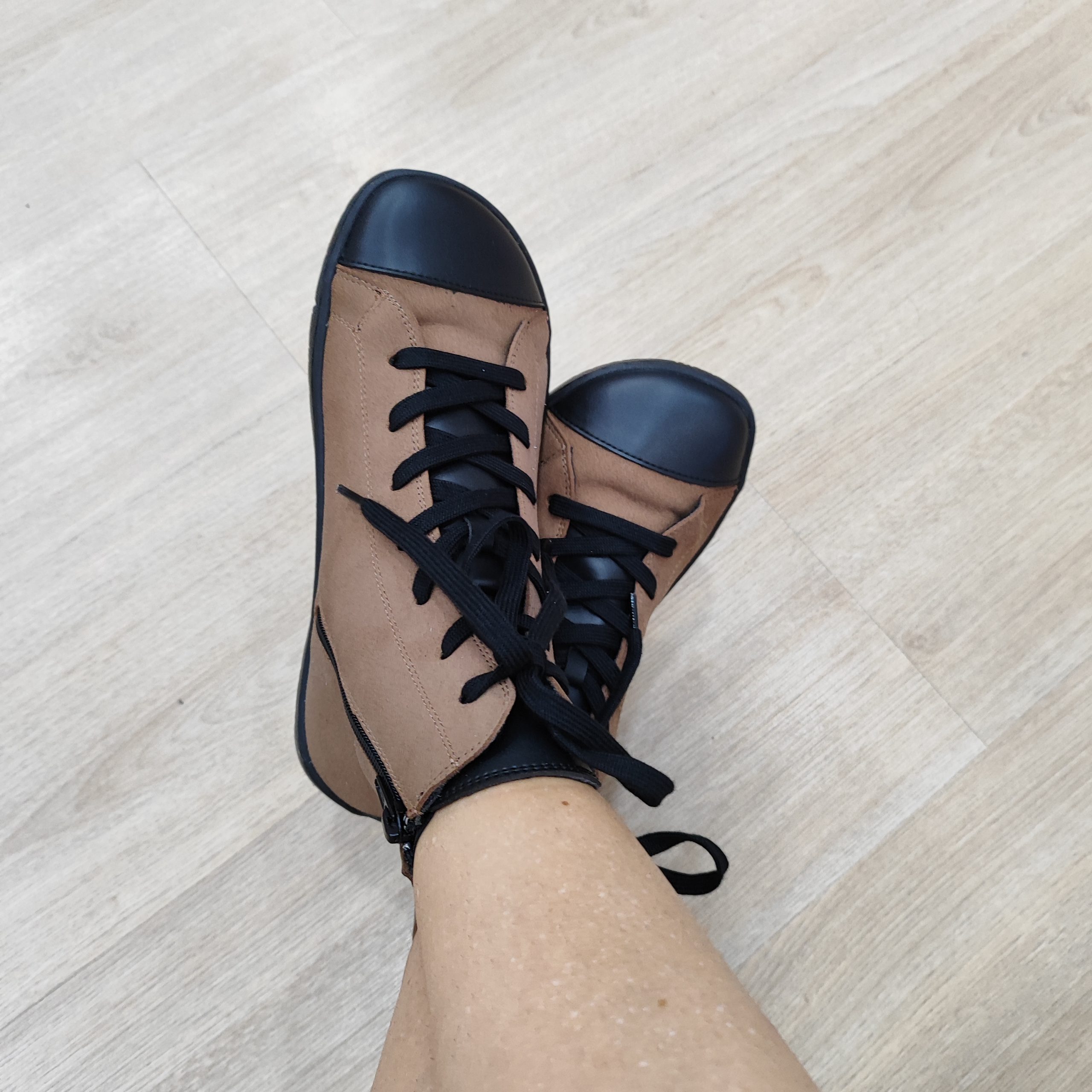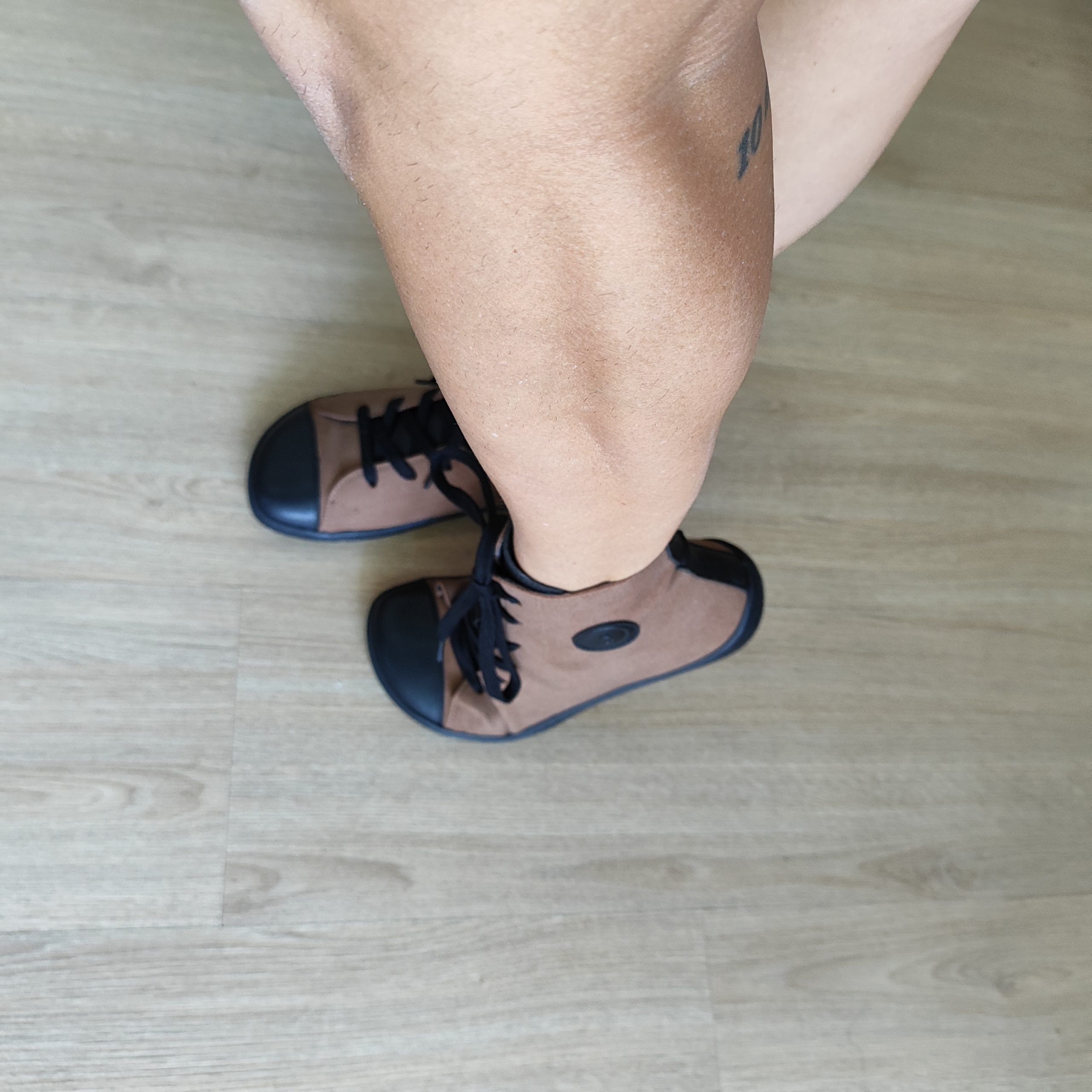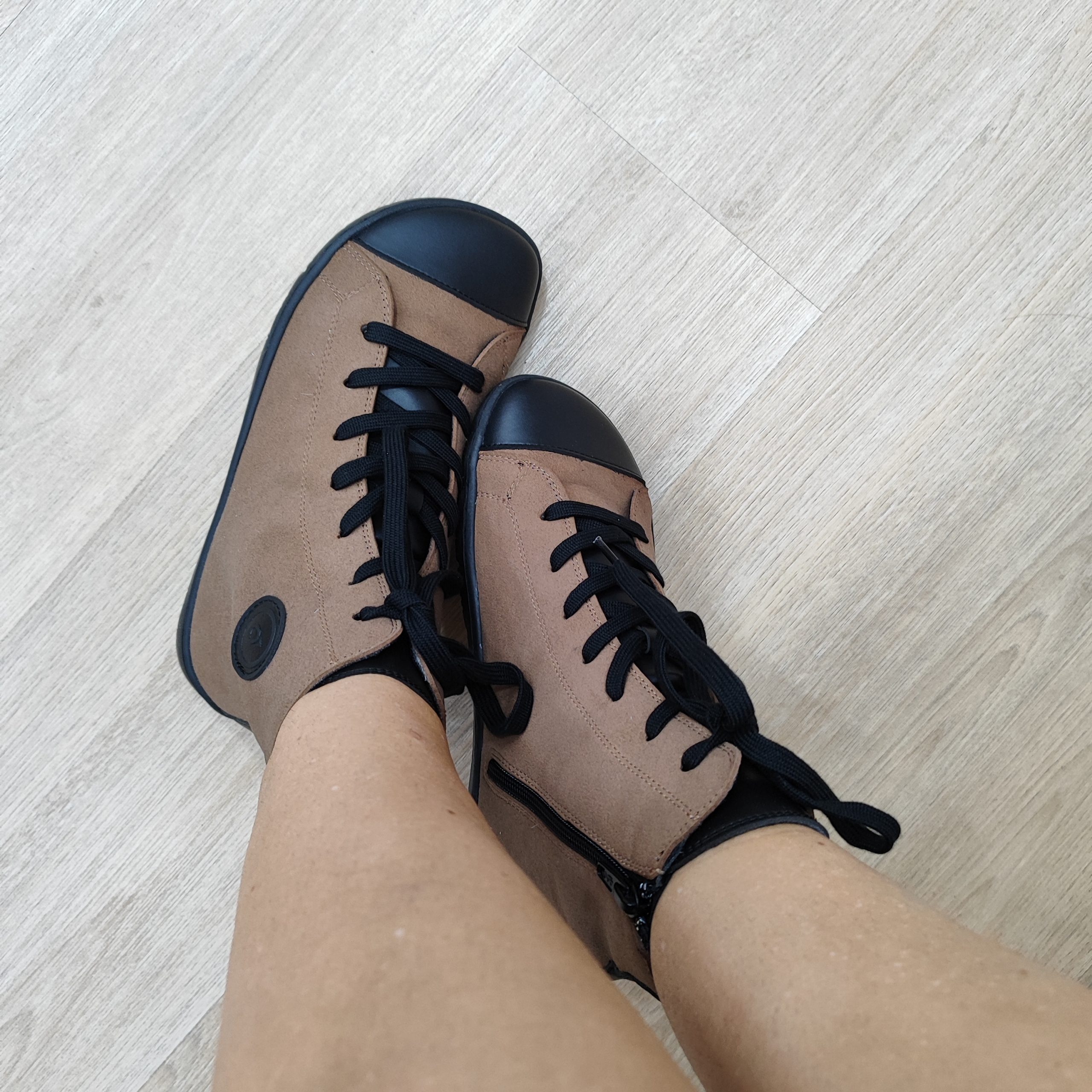 Botín respetuoso Coqueflex 4366 en micropelle suede negro corteza. Con cordones, puntera reforzada y suela flexible. Tallas 36 a 42.