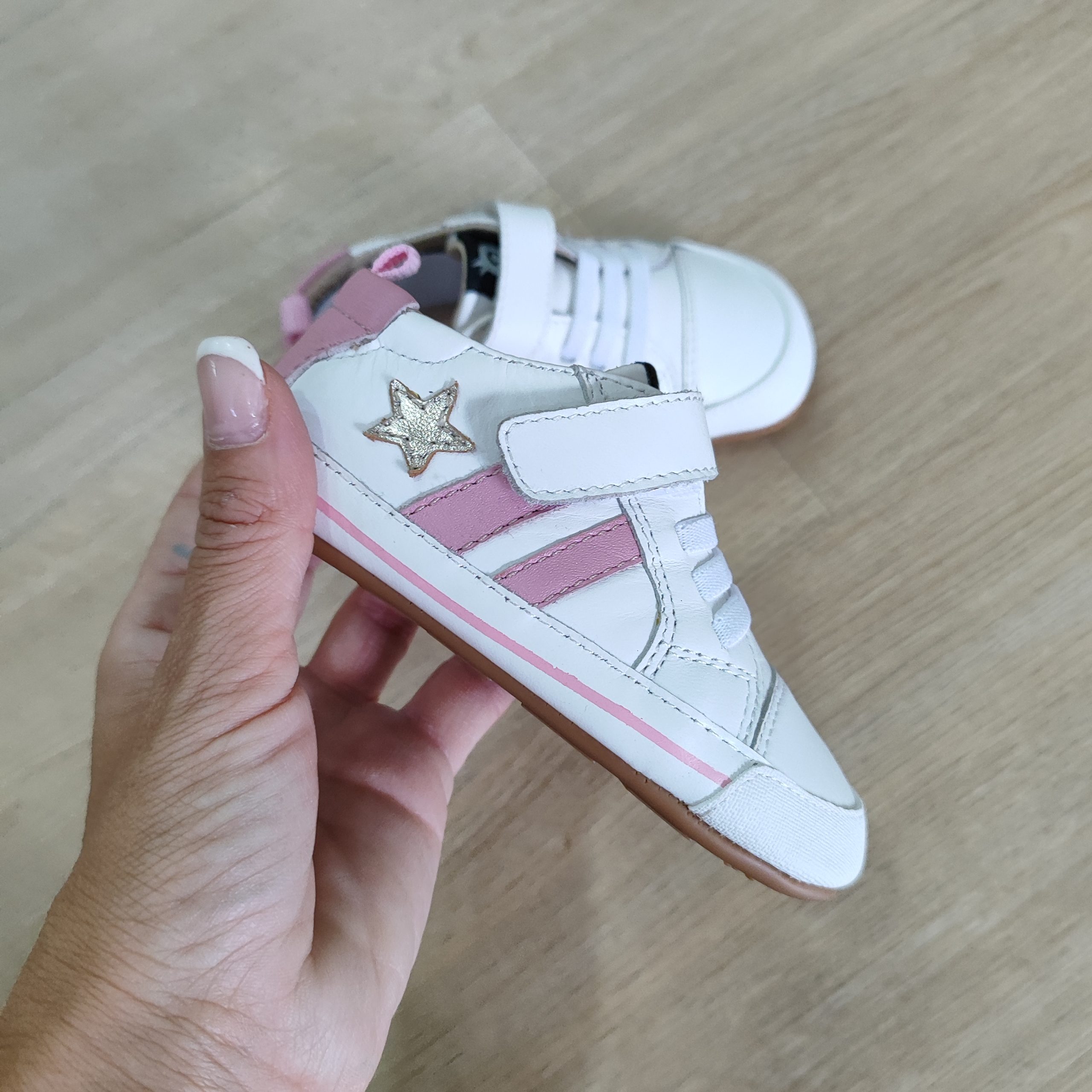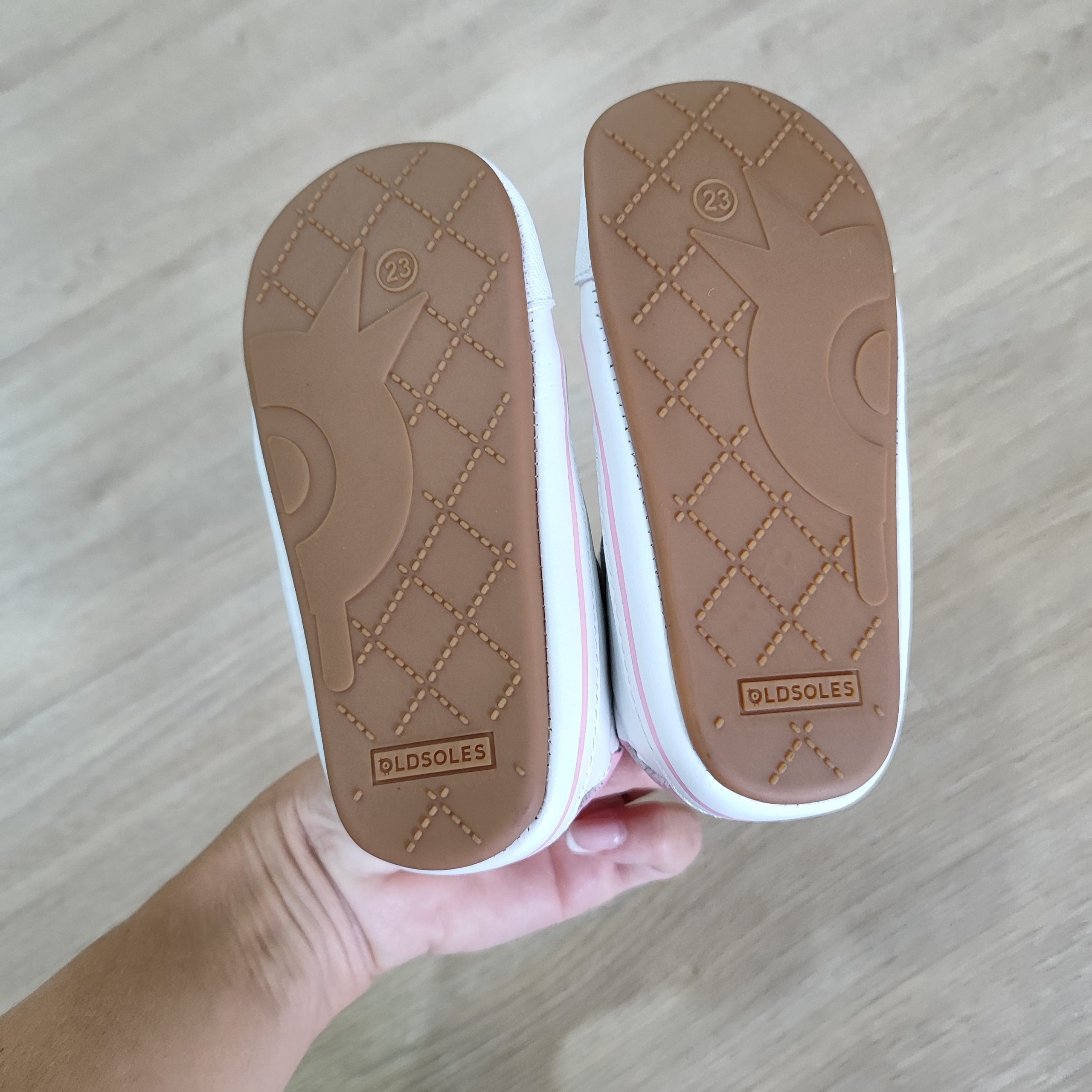 Zapatilla de bebé elaborada en piel muy fina y flexible, suela de goma extra fina, máxima apertura gracias a su  cierre de  velcro y gomas en la parte posterior para facilitar el ajuste. Puntera reforzada para ser mas resistente y plantilla extraible. Composición: Empeine: cuero Forro y plantilla: cuero Suela: otros materiales PRIMEROS PASOS