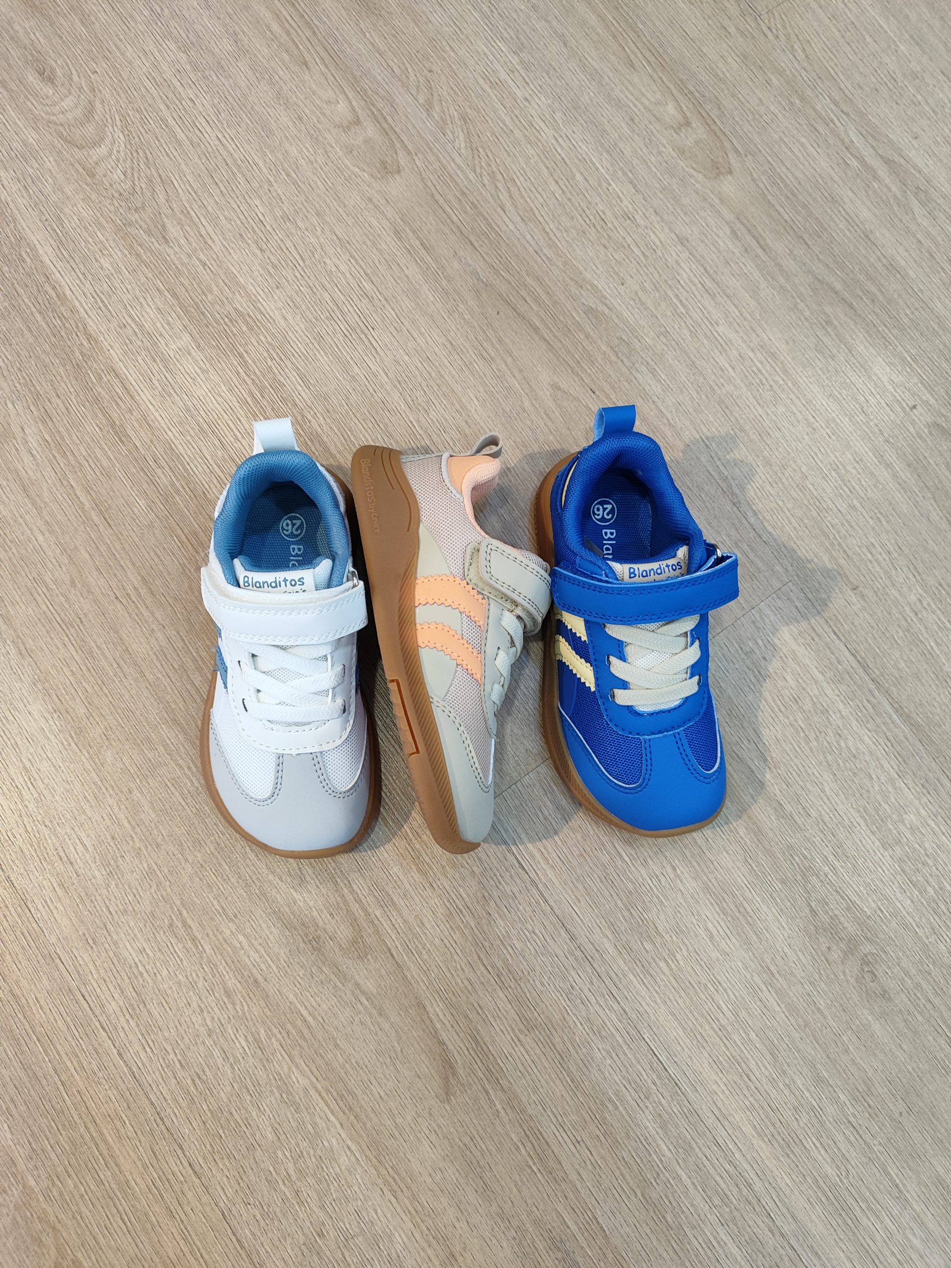 Cuenta con cierre de velcro y cordones elásticos, lo que facilita un ajuste rápido y seguro, ideal para fomentar la autonomía. Su diseño deportivo está disponible en tres combinaciones de color: