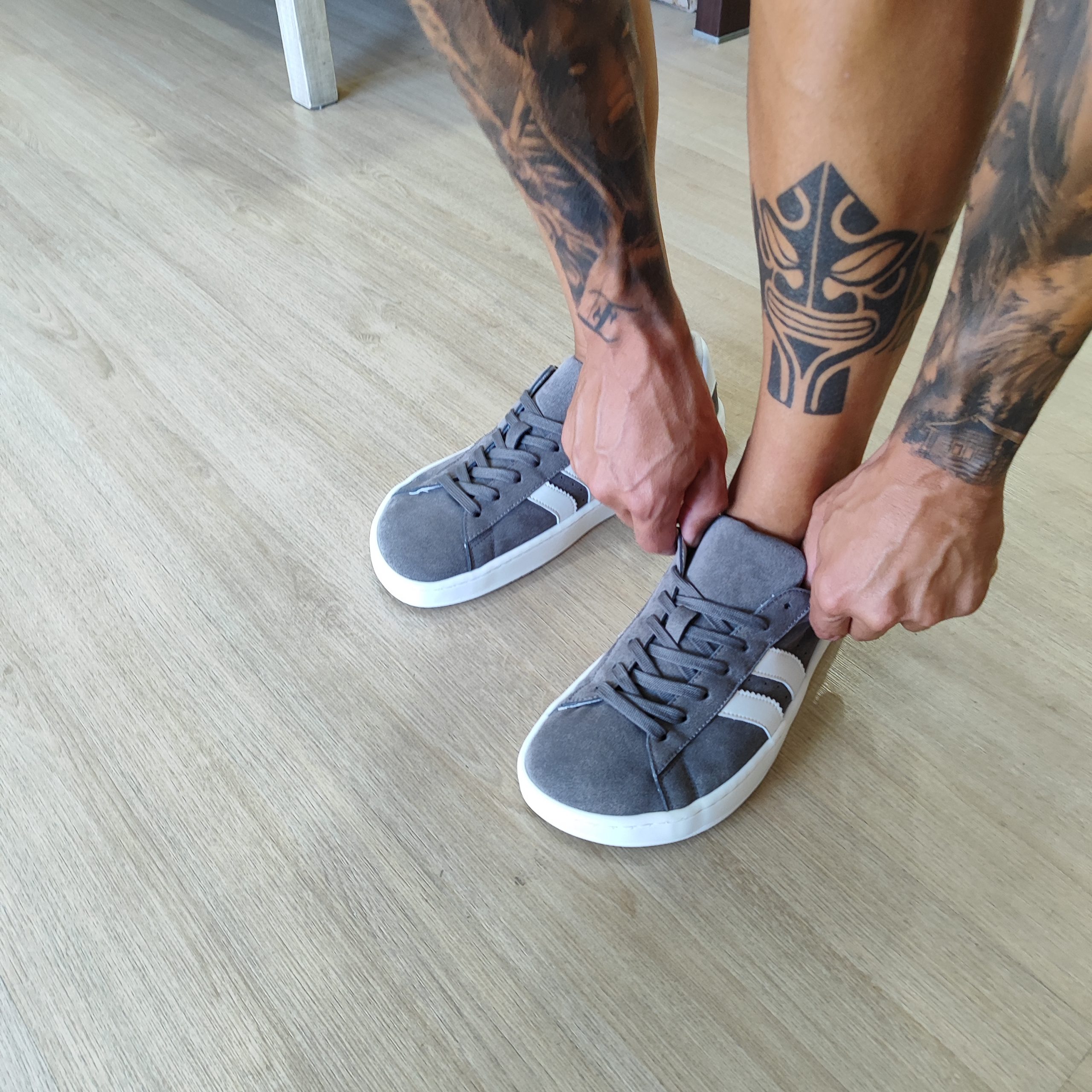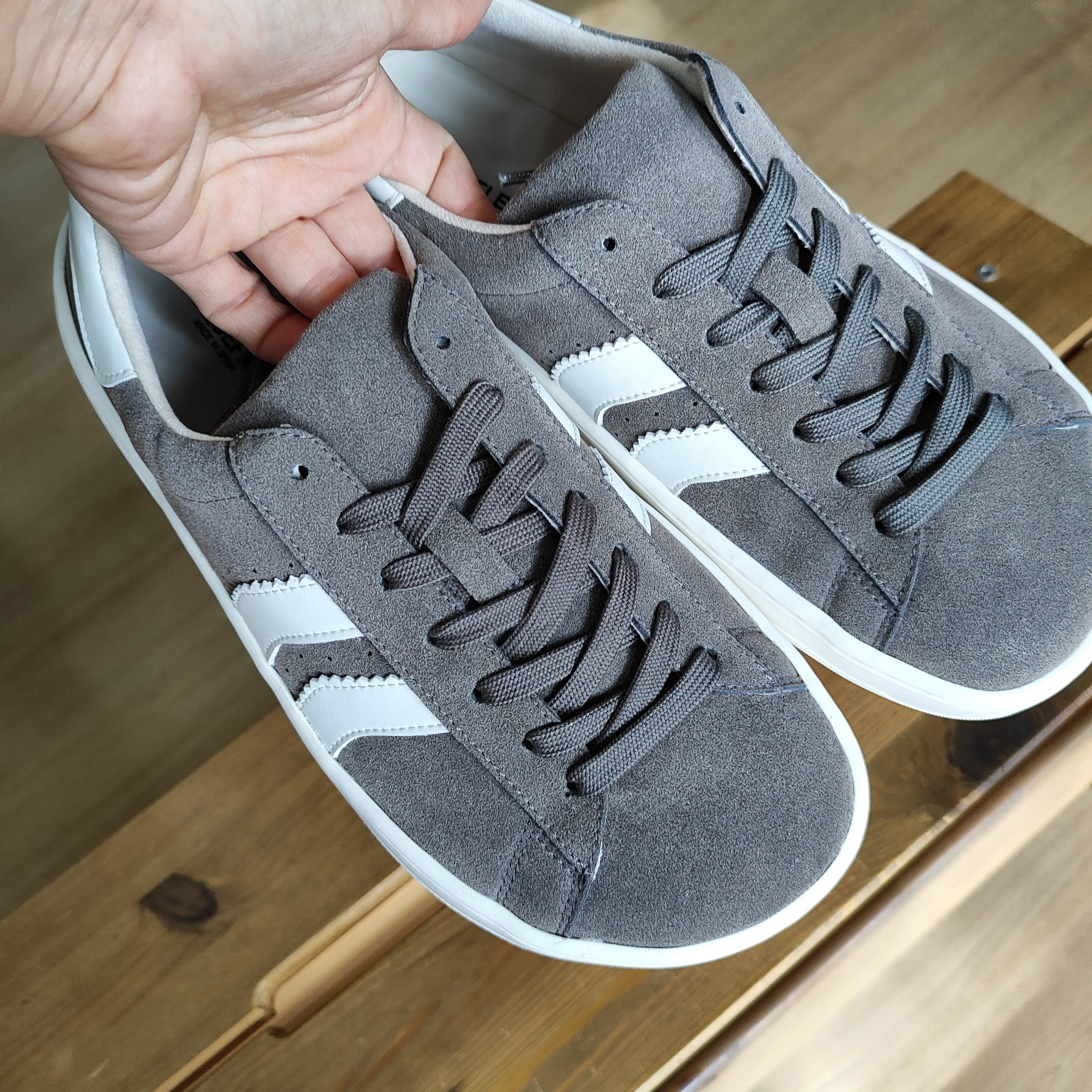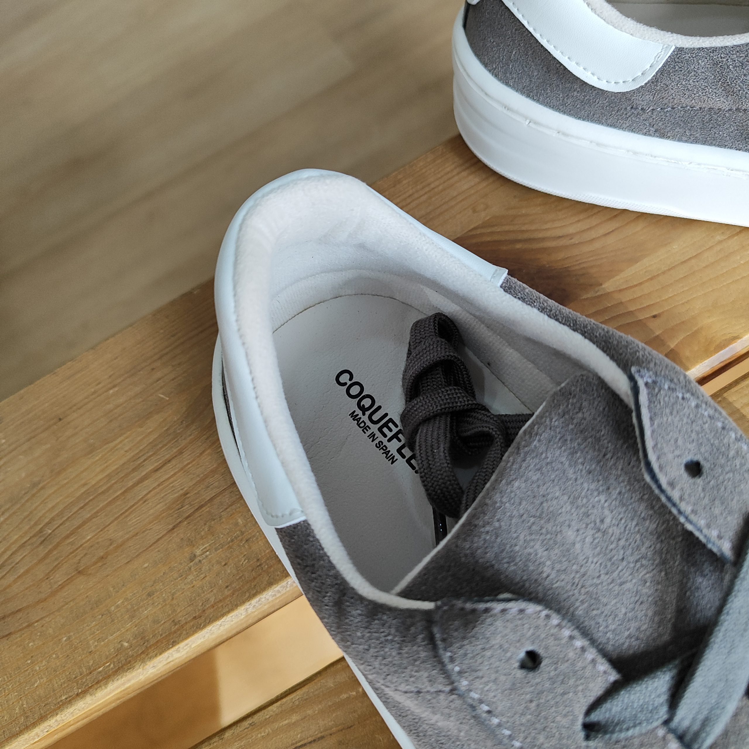 CoqueFlex 4385 Suede Micropel Gris White – Zapatos cómodos para pies anchos