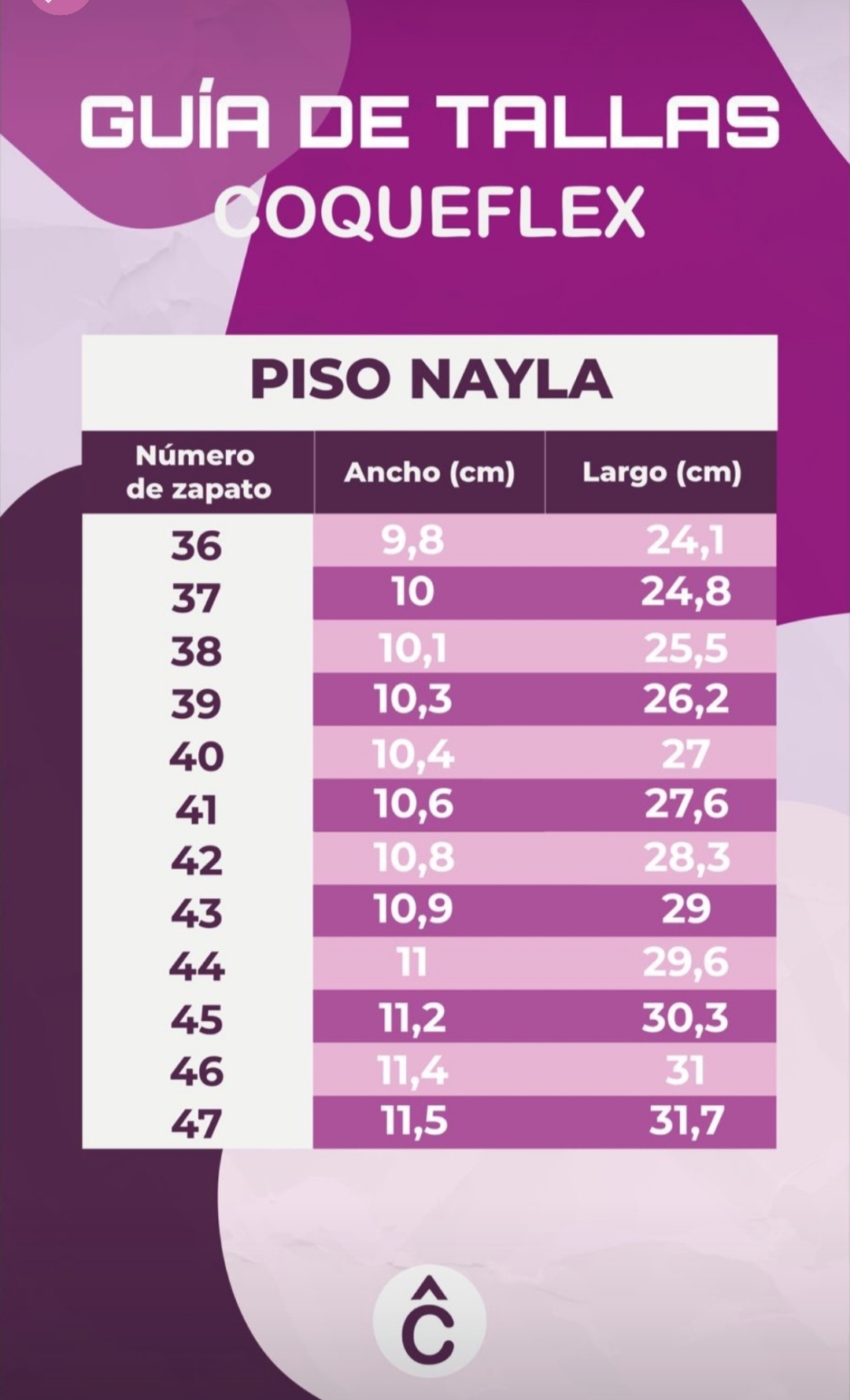 | Tallas | 36, 37, 38, 39, 40, 41, 42, 43, 44 |