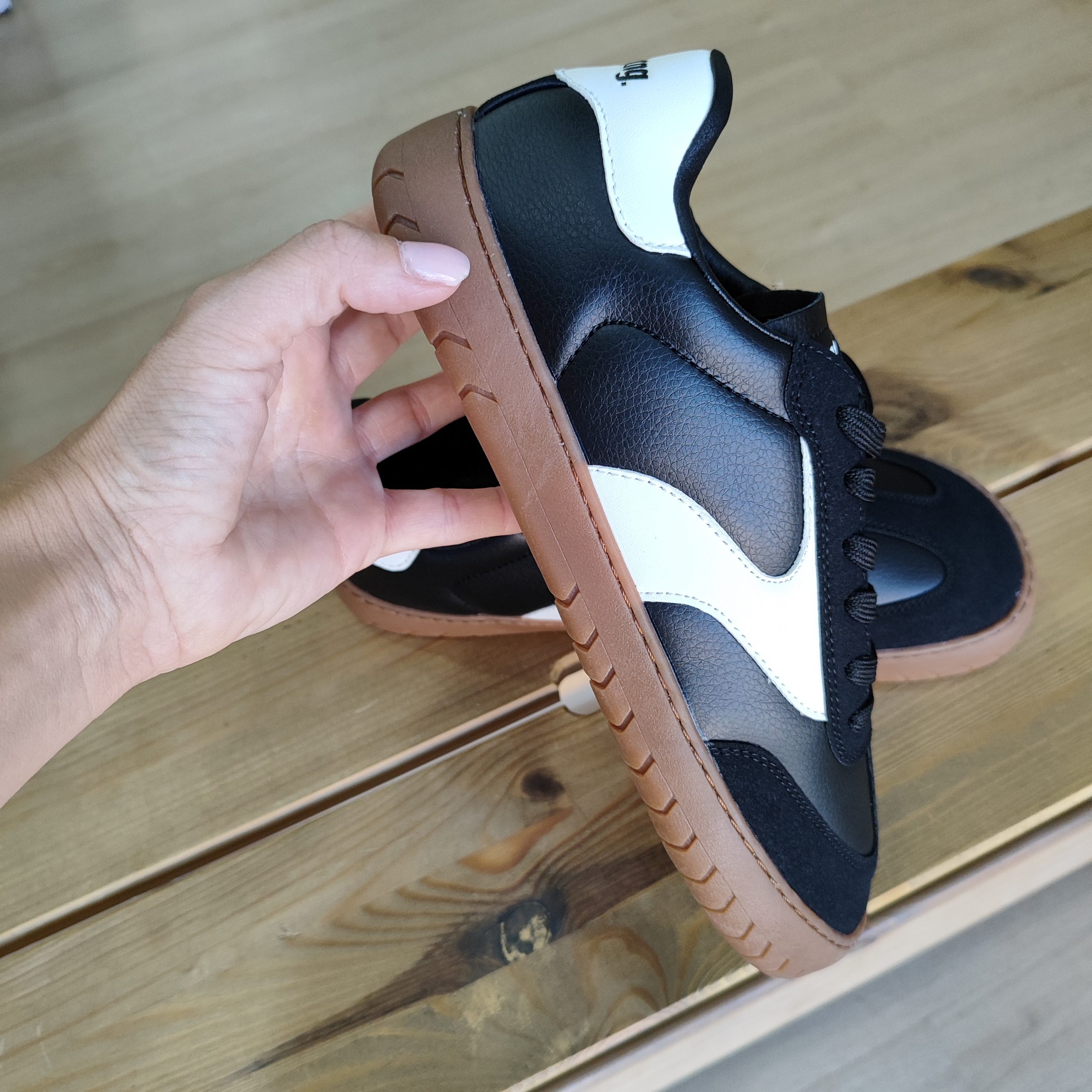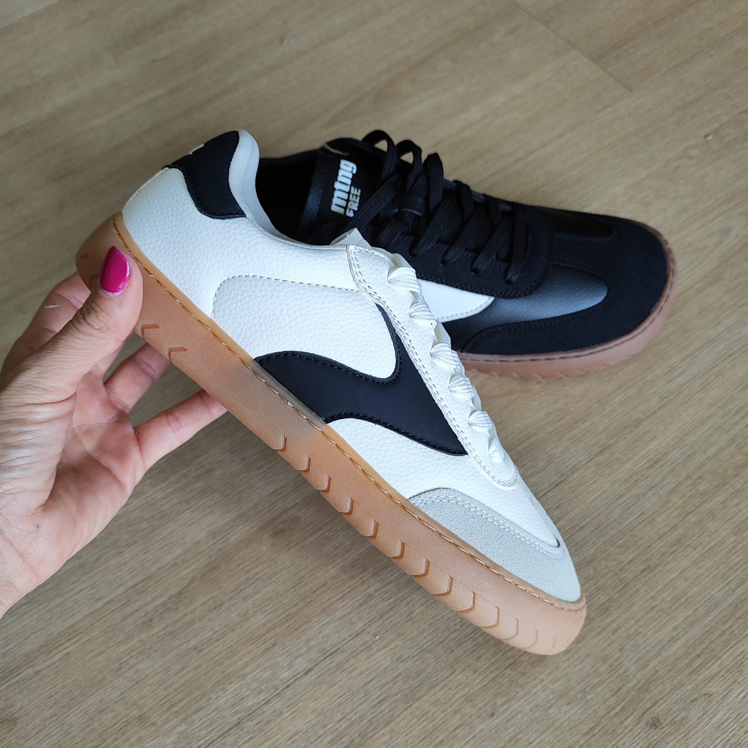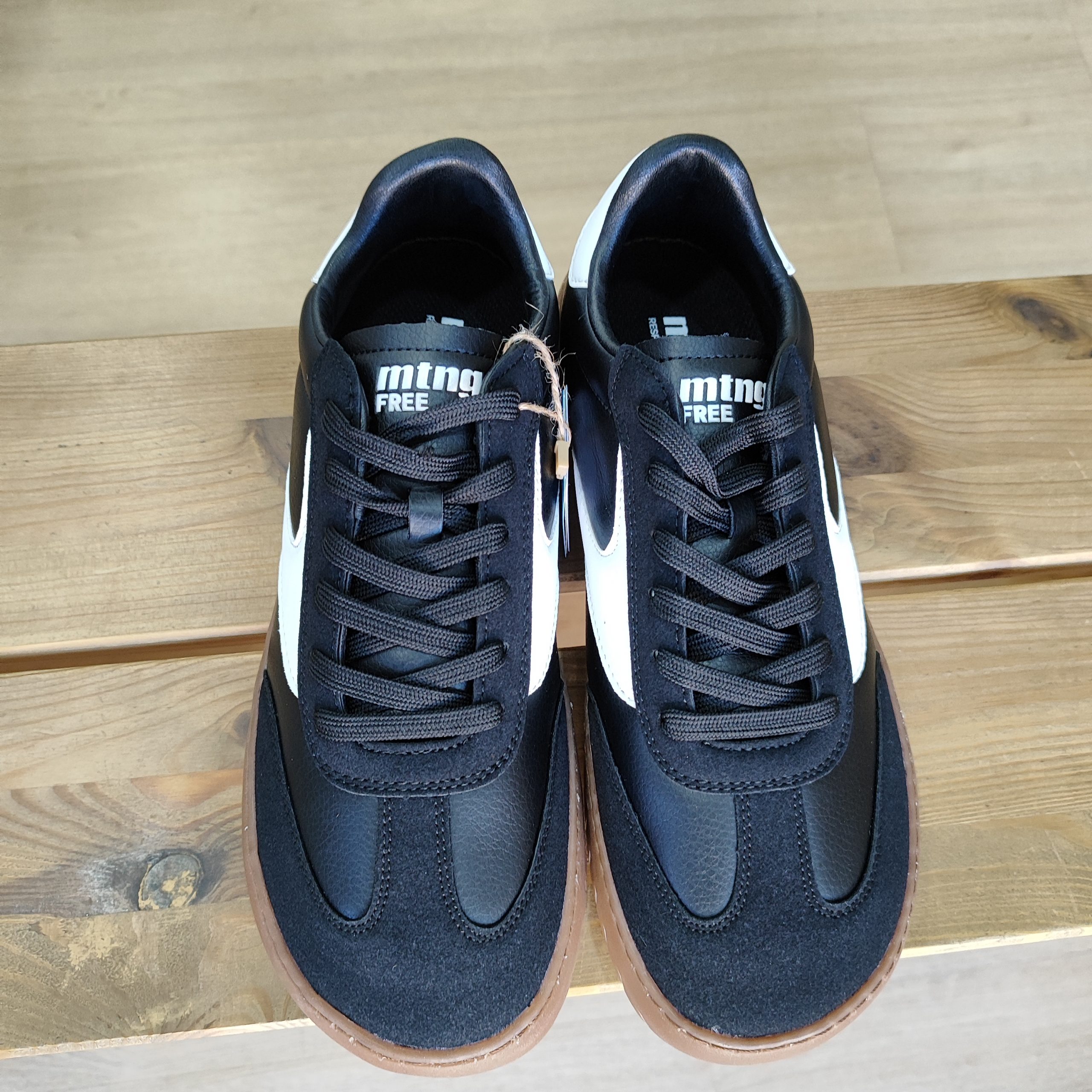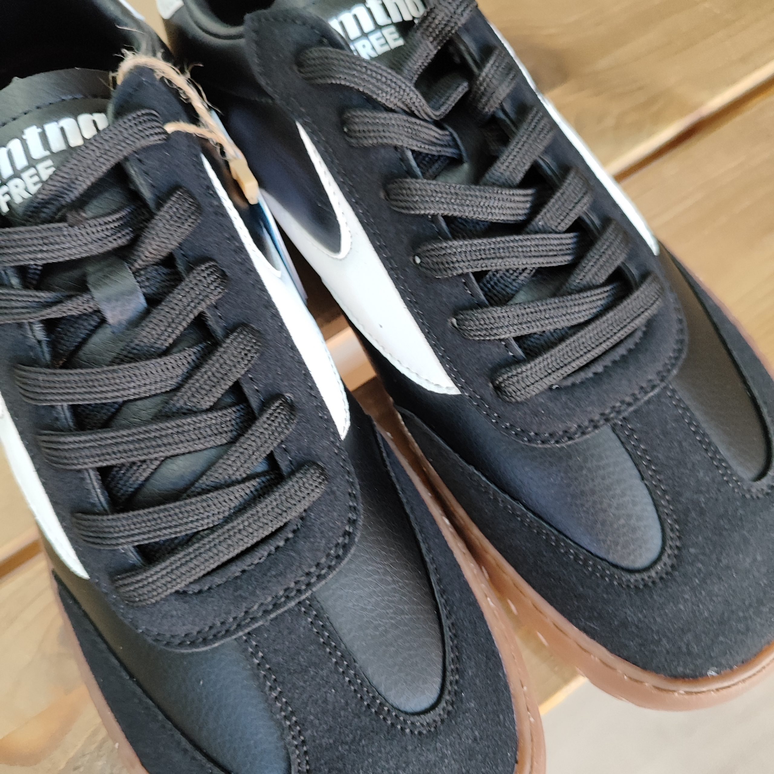 Zapatillas casual de color negro para hombre, modelo Free Jym de la marca Mustang. Su diseño combina paneles en tonos oscuros con detalles blancos en los laterales y talón, creando un contraste dinámico sobre la suela marrón de dibujo marcado. Presenta una silueta clásica de corte bajo, ideal para el día a día. Diseñadas y desarrolladas especialmente en colaboración con el Dr. Juanjo López, traumatólogo deportivo, para respetar el desarrollo natural del pie. Se trata de un calzado minimalista que gracias a su puntera ancha, suela totalmente plana (cero drop) y flexibilidad, mejora la anatomía del pie y favorece una mejor posición del mismo. Se vende con una plantilla de transición para hacer el cambio de calzado convencional a minimalista de manera progresiva. Con certificado VEGANO sellado por INESCOP, el cual garantiza que la naturaleza química principal del material no se corresponde con fibras de origen animal.