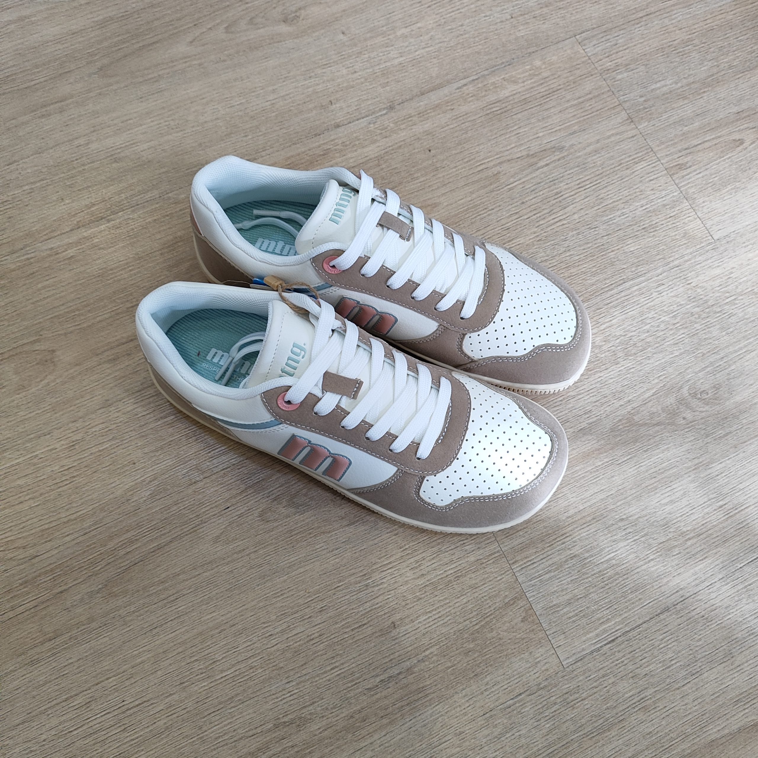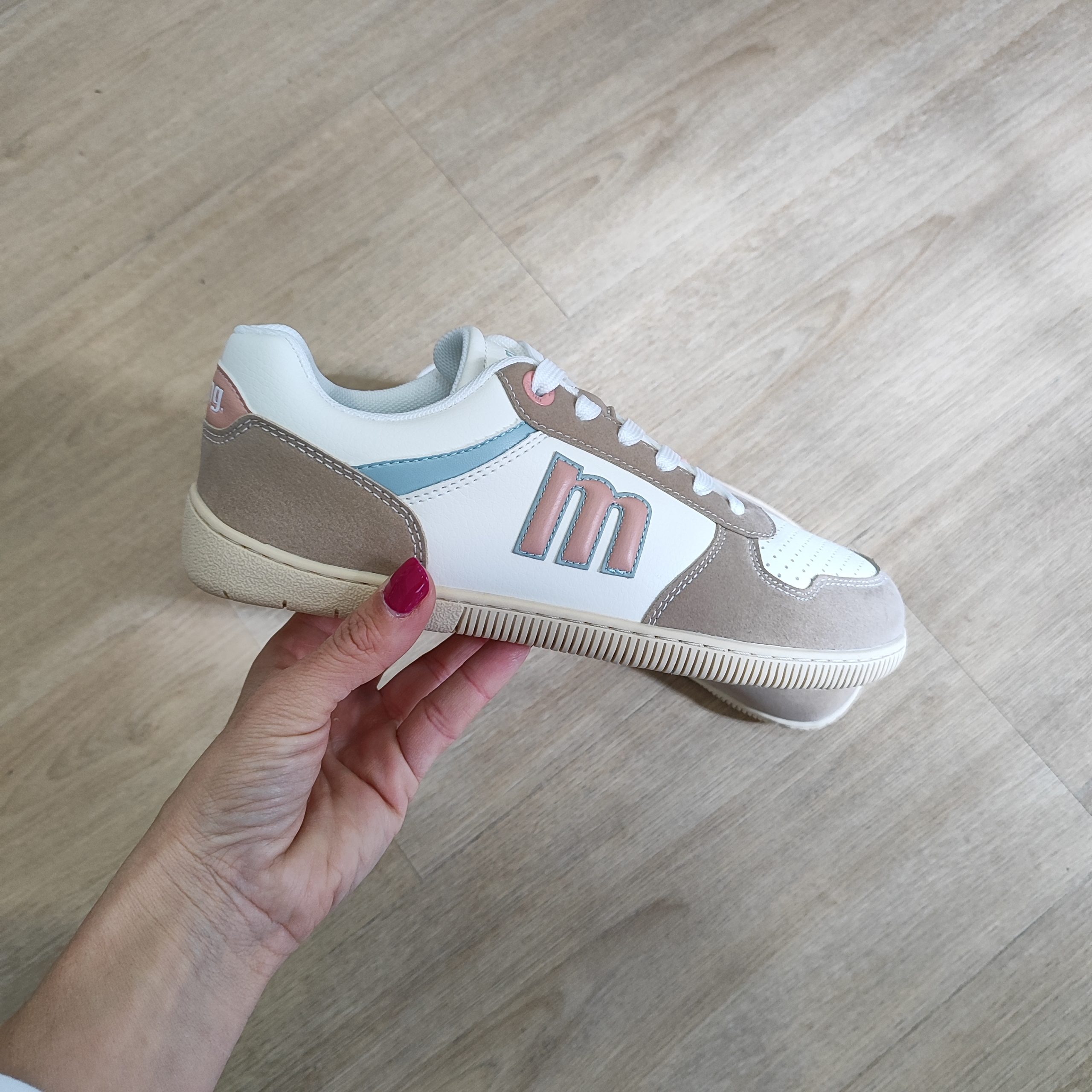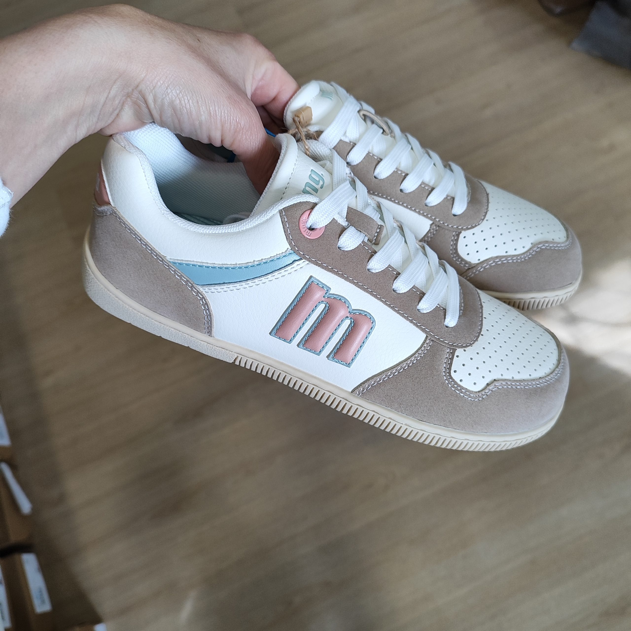 Calzado minimalista. Favorece la anatomía y posición del pie. Zapatillas blancas para mujer modelo Free Aria de Mustang, con detalles en tonos beige y rosa. El logo Mustang en el lateral destaca en un tono pastel que añade un toque de originalidad. Diseñadas y desarrolladas especialmente en colaboración con el Dr. Juanjo López, traumatólogo deportivo,…