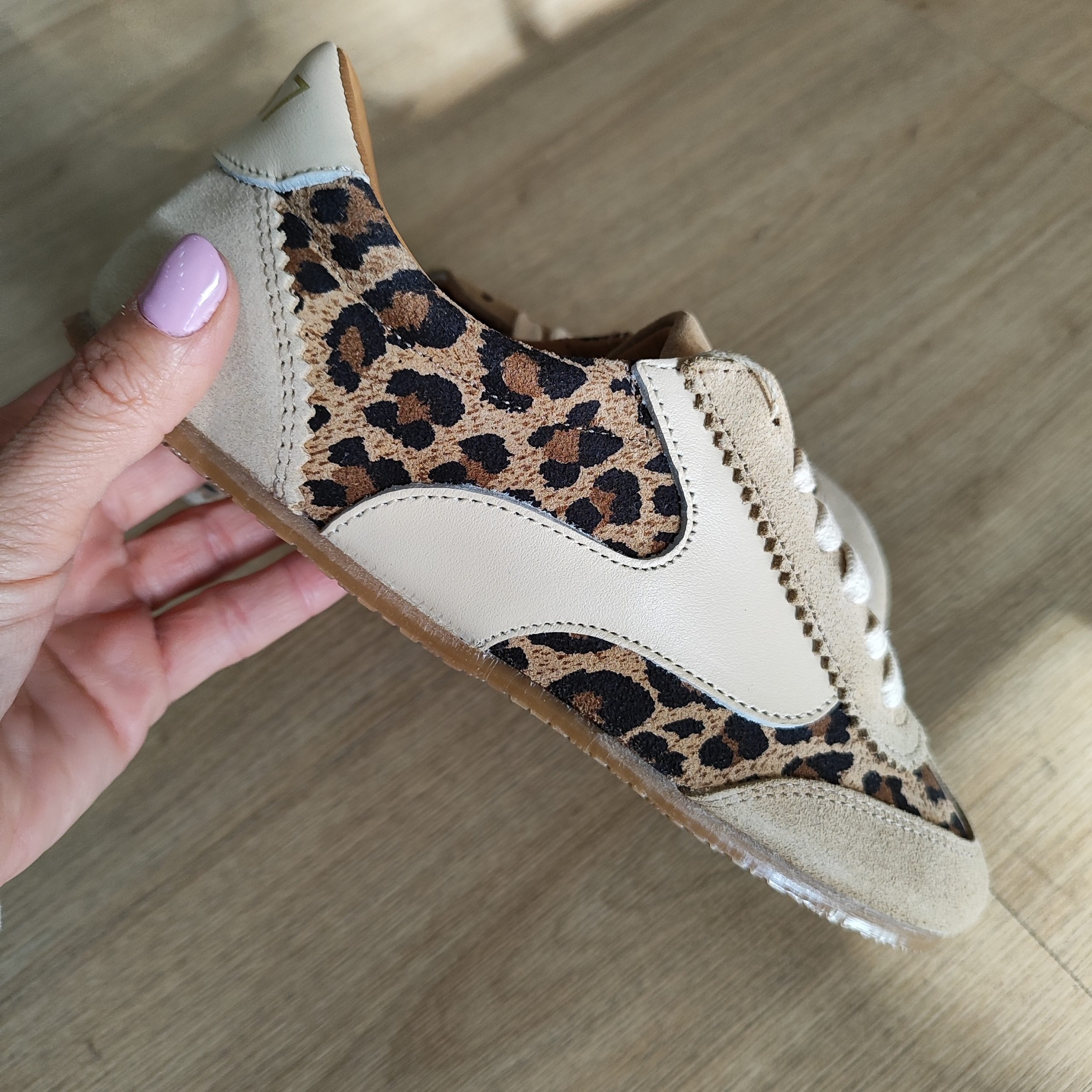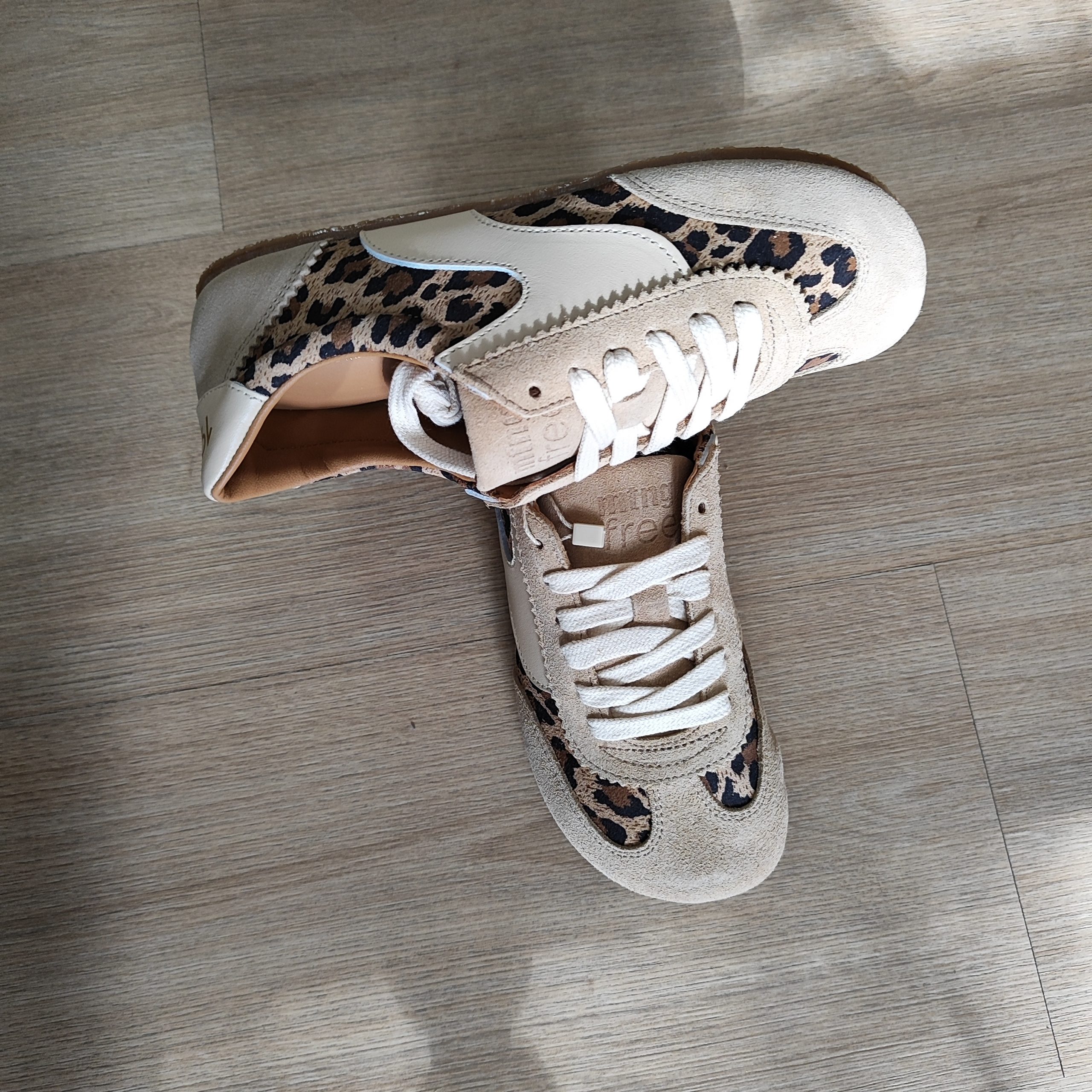 Zapatillas barefoot retro de color arena con estampado animal print para mujer, modelo Free Mia de la marca Mustang. Este diseño combina paneles lisos tipo serraje con detalles en estampado de leopardo, aportando un toque desenfadado y distintivo. Incluye cierre con cordones y plantilla extraíble que permite ajustar con precisión la talla. Diseñadas y desarrolladas especialmente en colaboración con el Dr. Juanjo López, traumatólogo deportivo, para respetar el desarrollo natural del pie. Se trata de un calzado minimalista que gracias a su puntera ancha, suela totalmente plana (cero drop) y flexibilidad, mejora la anatomía del pie y favorece una mejor posición del mismo. Al estar fabricadas con piel natural, la plantilla puede presentar un aspecto arrugado o irregular en algunas zonas, algo completamente normal que no afecta al uso y que refleja la autenticidad y singularidad del material.