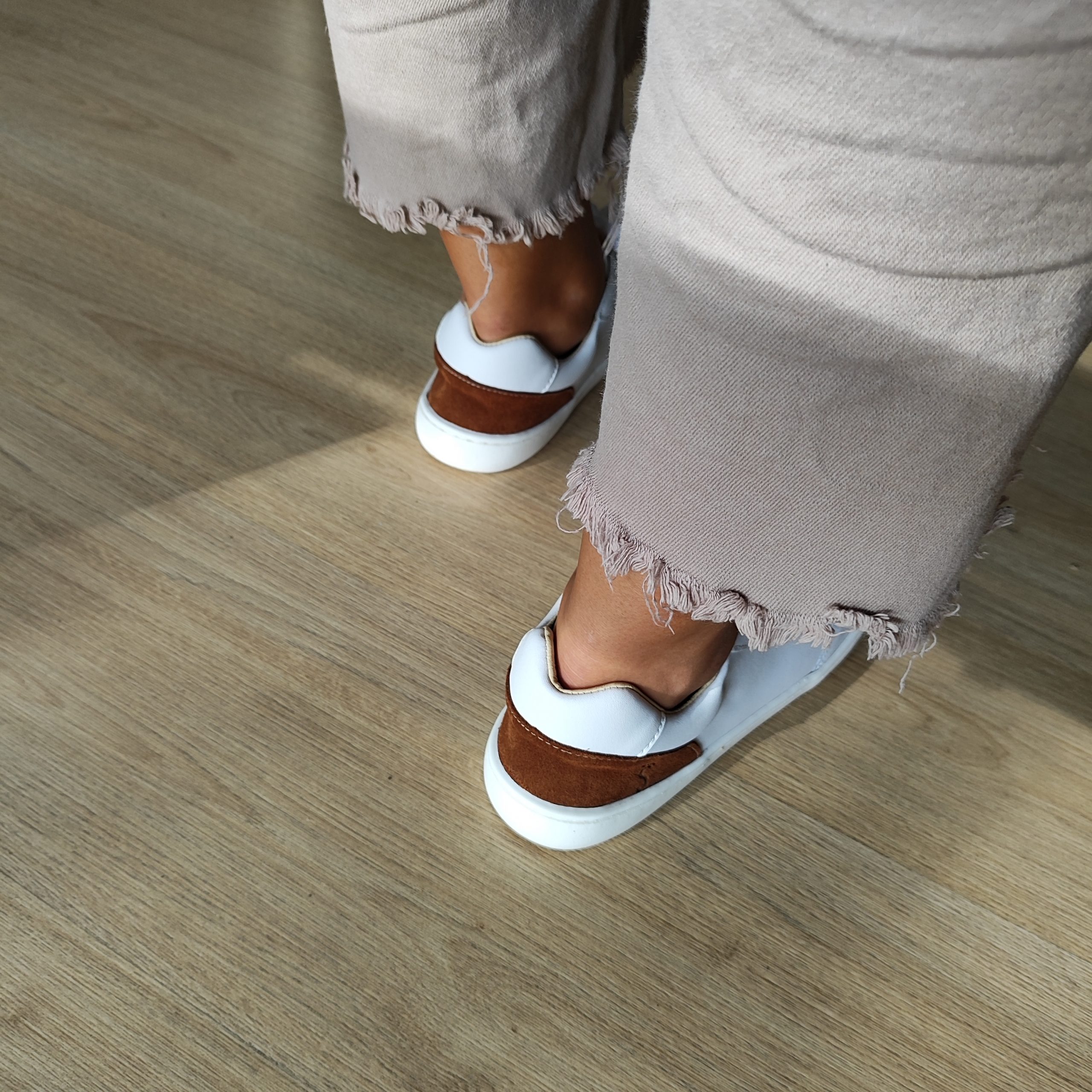 👟 Deportiva barefoot Nens básica blanca 👟 Unas zapatillas minimalistas infantiles diseñadas para favorecer el desarrollo natural del pie. Confeccionadas en material resistente, con cordones clásicos, suela XL flexible y detalle en color marrón en la talonera 🤎. Estas deportivas barefoot blancas son ideales para el día a día: ligeras, transpirables y con un diseño…