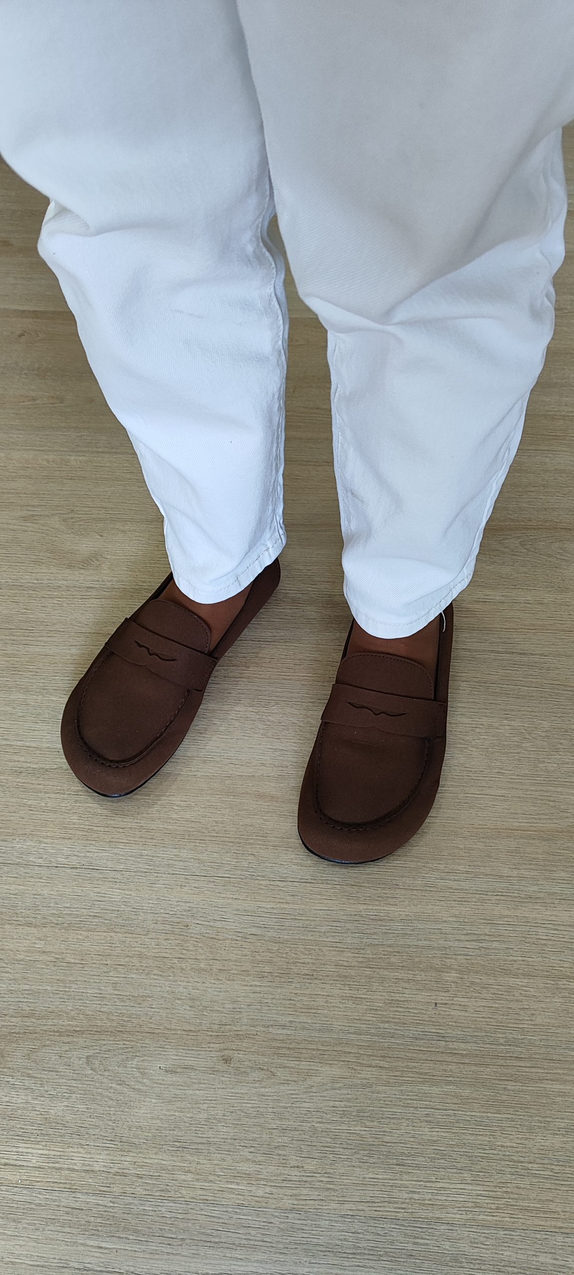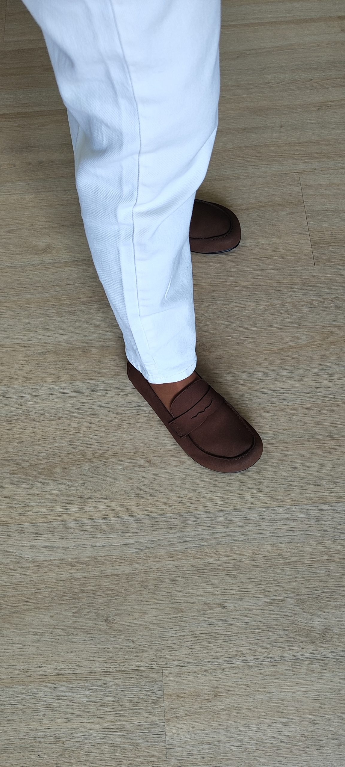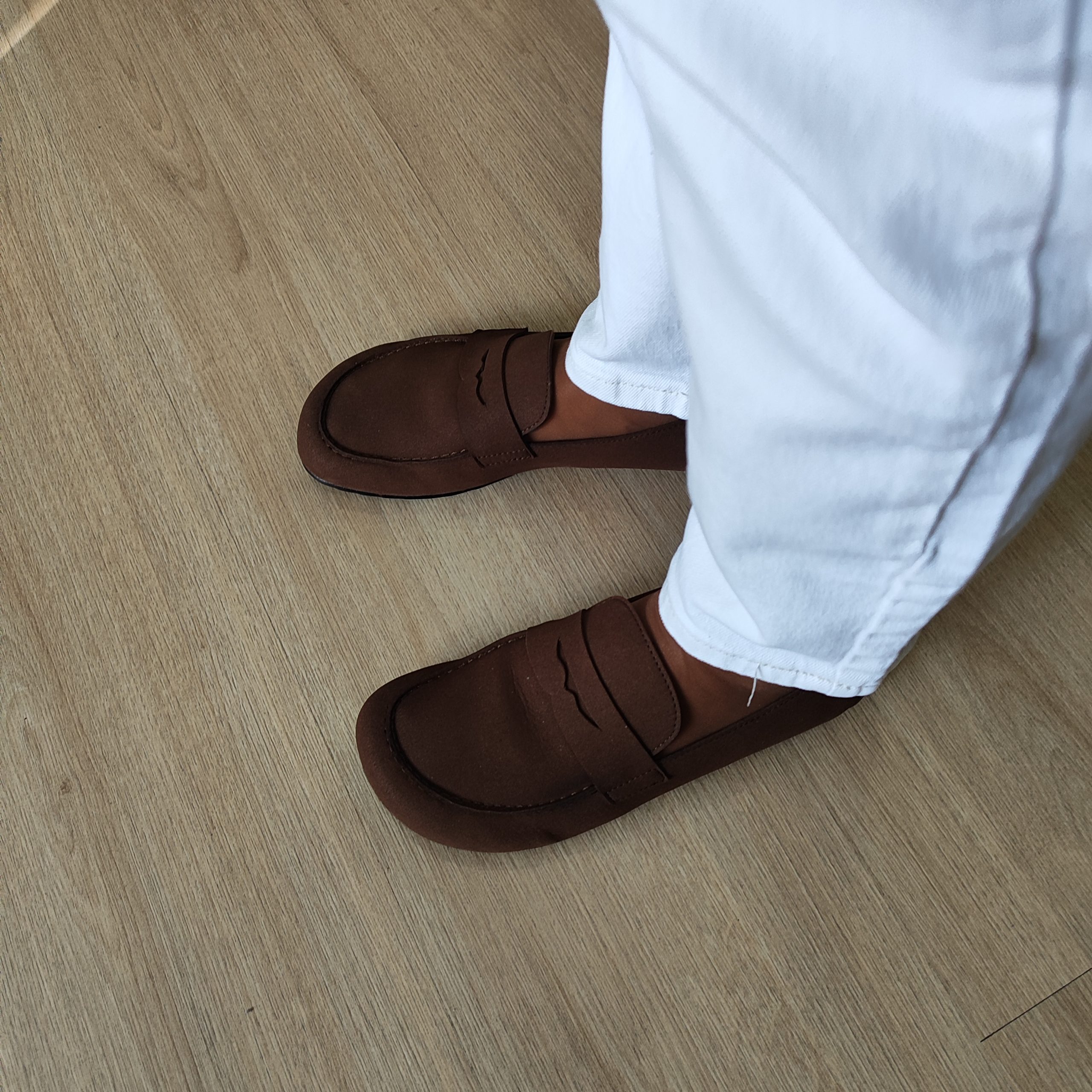 Mocasín Suede en color roble, modelo 4395 de Coqueflex. Calzado barefoot respetuoso, flexible y de piel serraje suave. Elegante, cómodo y perfecto para el día a día.